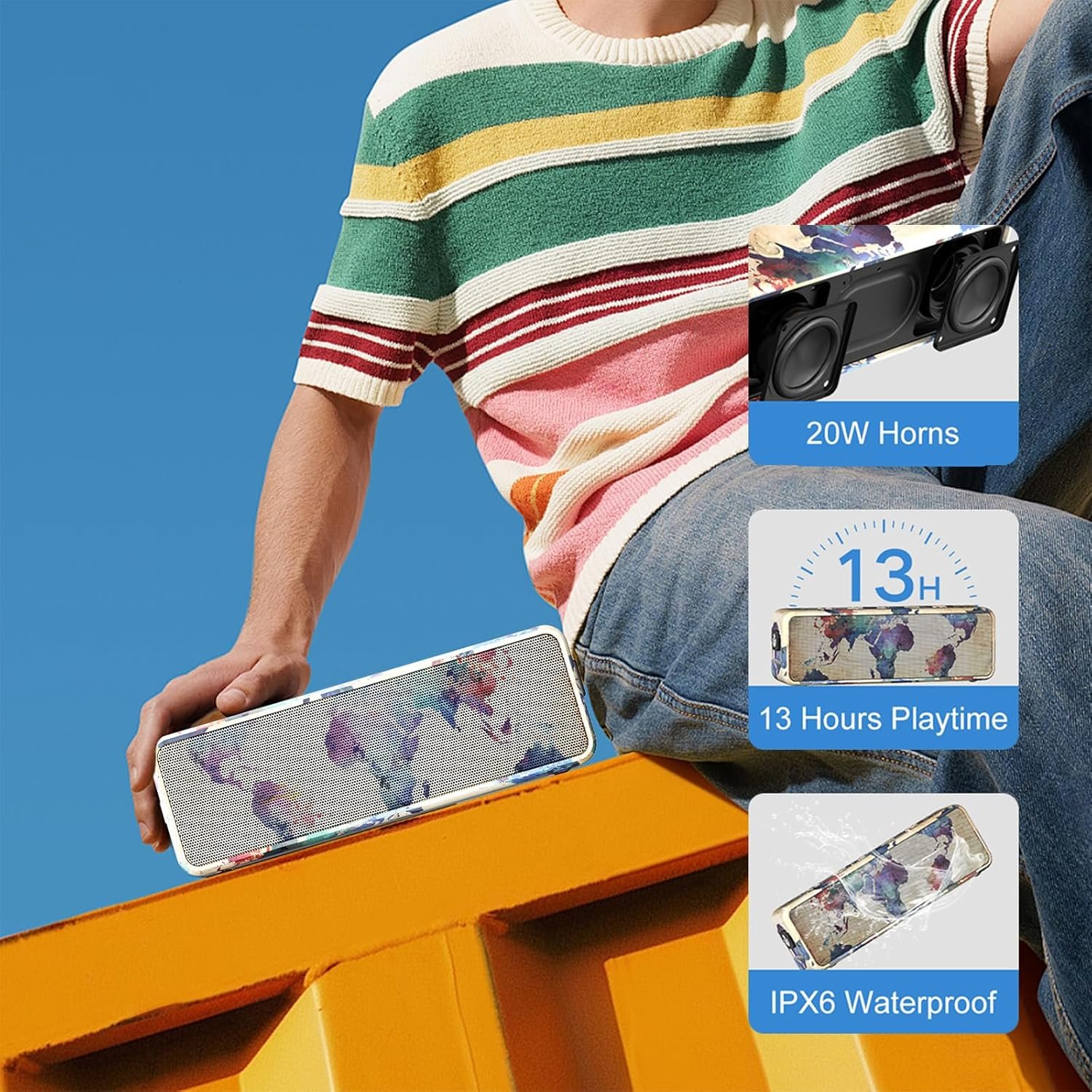 Xdobo BMTL World Bluetooth Speaker, Portable Wireless Speaker with[ 20W] – IPX6 Waterproof, 13H Playtime, Type-C, Heavy Bass for Outdoor and Home (Graffiti).