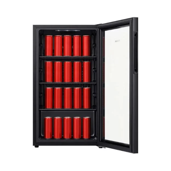 - Hisense 122 Liter Chiller Single Door Beverage Cooler, Color Black, With LED Light, Digital Touch Control, Recessed Handle, Adjustable Glass Shelves, Low-E Glass Door, Model RBC122N4ASU -1 Years Full & 5 Years Compressor Warranty.