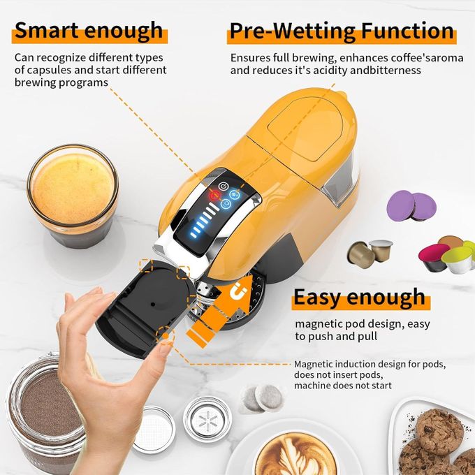 This 5-in-1 coffee machine caters to various coffee types, including NES, DG, powdered coffee, and ESE, ensuring you can enjoy multiple flavors from a single device.