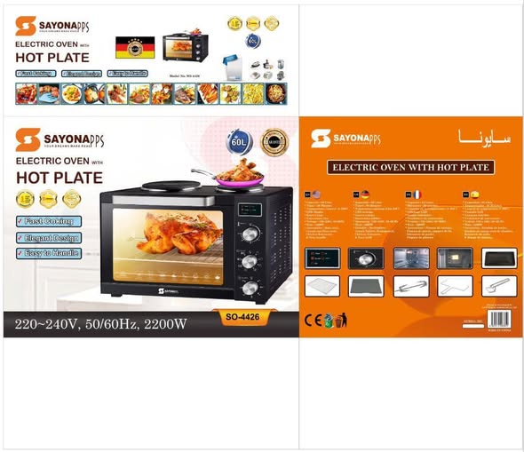 The Sayona Oven 45L boasts a generous capacity of 45 liters, providing ample space to cook large meals or multiple dishes simultaneously. Whether you’re hosting a dinner party or preparing a family feast, this oven has got you covered.