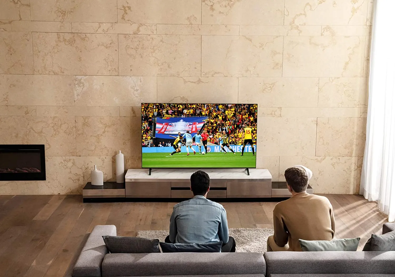 The 50-inch frameless design delivers a sleek look, and the Full HD resolution ensures clear and vibrant visuals.