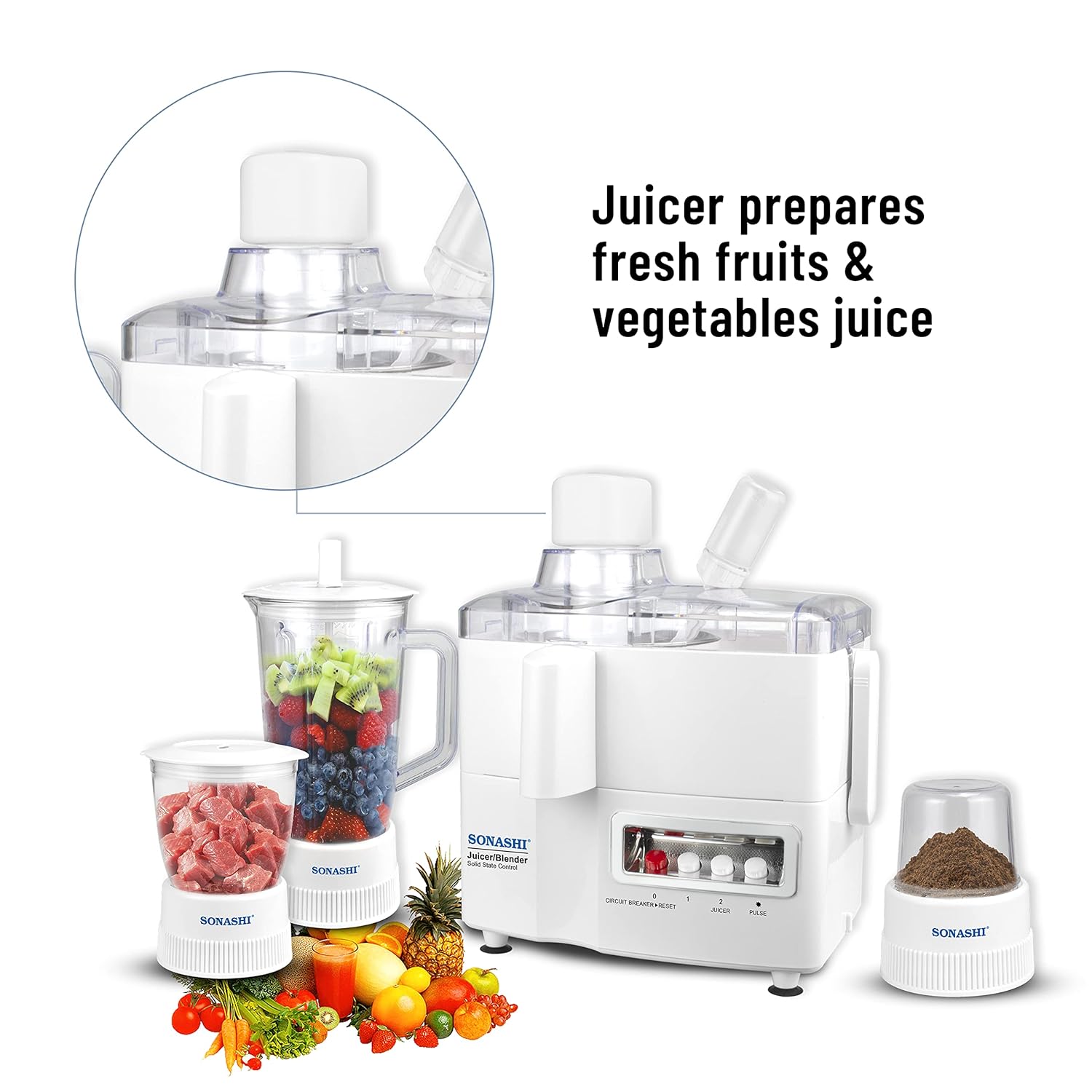 SONASHI 4-in-1 Juicer Blender [White] 600W Copper Motor, 2 Speed, 3 Jars w/Lid for Wet/Dry Grinding, Grater & Strainer, Blender for Kitchen, Home Kitchen Appliances – SJB-309