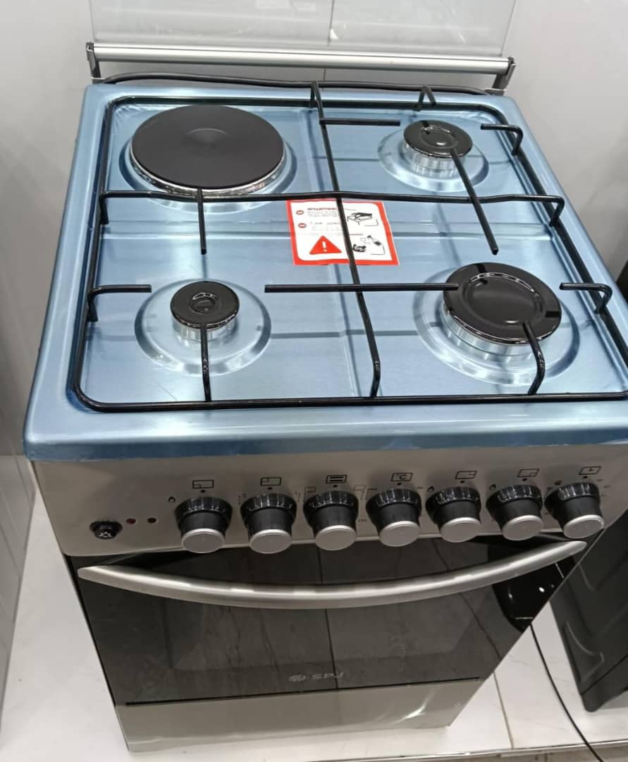 Whether you’re preparing family meals or hosting guests, this SPJ cooker delivers efficiency and flexibility, featuring three high-performance gas burners, one electric hot plate, and a spacious gas oven with a glass door and interior lighting for convenient baking and roasting.