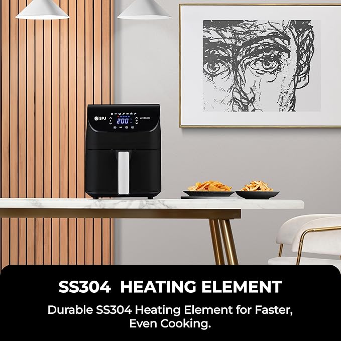 Upgrade your kitchen with the SPJ Digital Air Fryer a versatile appliance that harnesses the power of rapid air circulation to deliver crispy, delicious meals with significantly less oil. Designed for modern lifestyles, its sleek black exterior and stainless-steel handle add a refined touch to any countertop, while the 6-liter capacity basket easily accommodates family-sized portions or meal prep batches.
