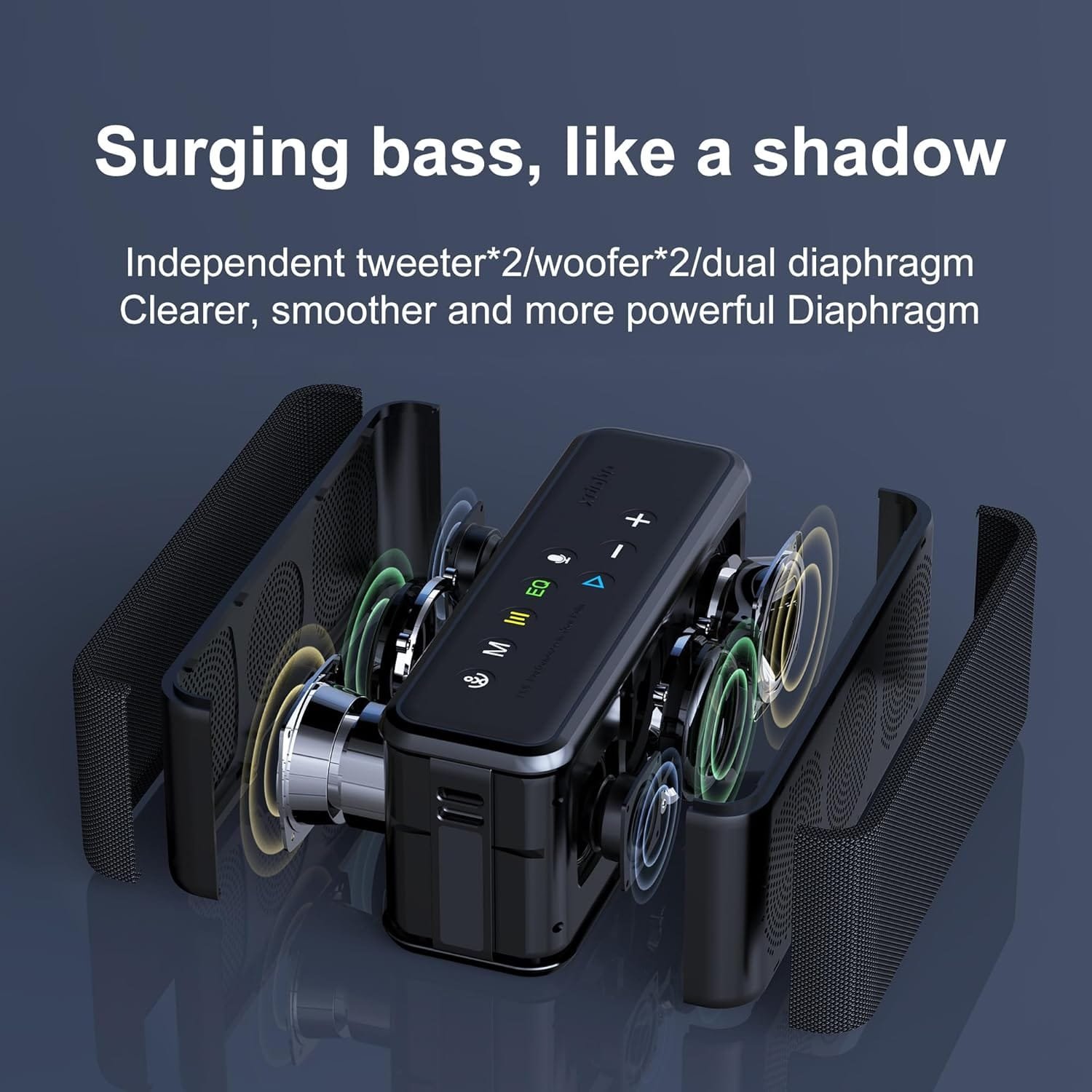 - 【Powerful 100W Stereo Sound & Deep Bass]Experience crystal-clear audio with the XDOBO X8 Max portable Bluetooth speaker. Equipped with 4 high-performance drivers, this wireless speaker delivers up to 100W of rich stereo sound and punchy bass, perfect as a party speaker, computer speaker, or outdoor Bluetooth speaker. A true alternative to bulky sound bars or boombox systems.