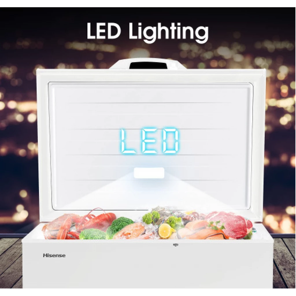 Hisense 260 Litres Chest Freezer provides a reliable frozen storage and feature a convenient center-located lid handle and a quiet motor. The indicator light reassures you that power is supplied to the freezer.