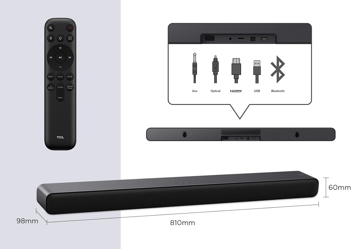 - Easy connection & One remote control : Stream music wirelessly from your smartphone, tablet or laptop. TCL S45HK connects to your TV via a single HDMI eARC cable. Both TV and soundbar can be controlled with one remote for better experience.