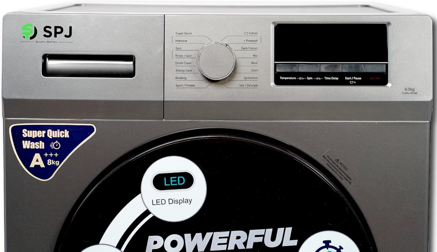 SPJ 8Kg Fully Automatic Front Load Washing Machine With LED Display, Multiple Wash Programs, Double Layer Front Door, Energy Efficient, Easy Operation – 1 Year Warranty