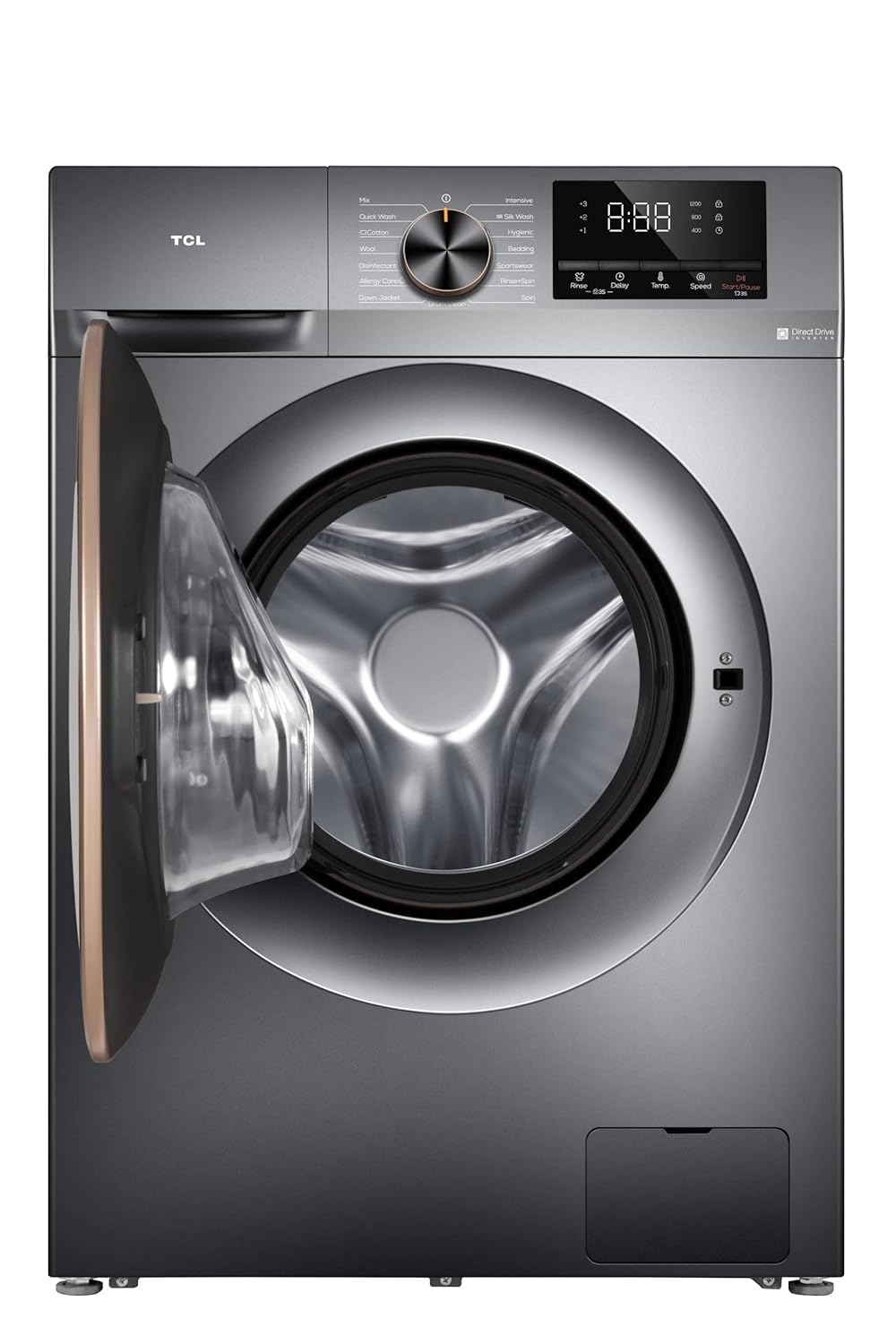 - 1. 【High Performance with Direct Drive Inverter Motor】 The TCL 10KG Front Load Washing Machine features a DD inverter motor that provides gentle, silent, and powerful washing performance. It consumes less energy and operates with lower noise and vibration, ensuring an efficient and quiet laundry experience.